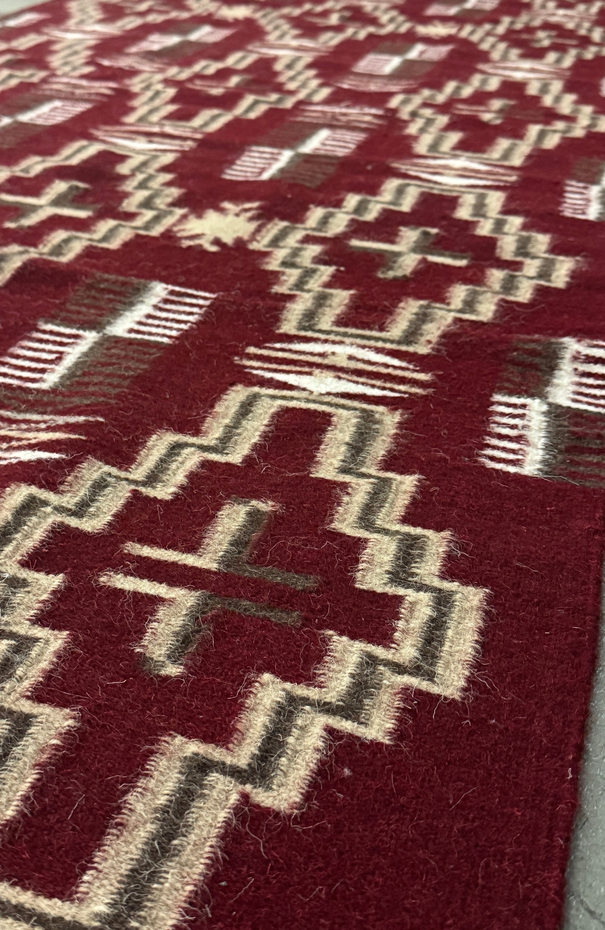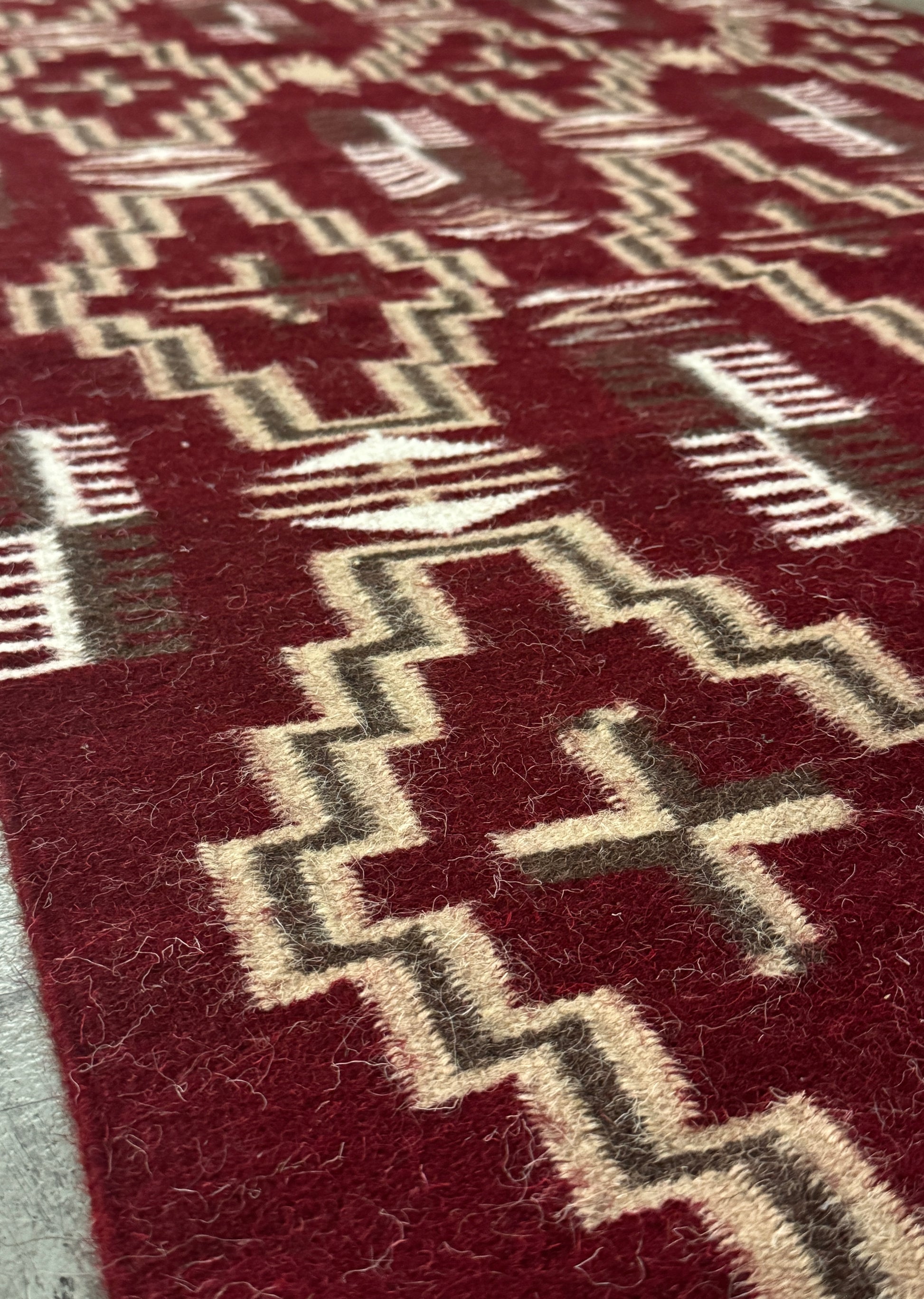 - Vacuuming a handmade rug with a beater bar or strong suction (Dyson) will cause permanent yarn damage & distortion.